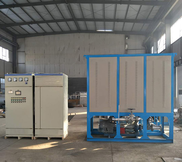 電熱式導熱油鍋爐,是一種新型的熱能轉換加熱設備。其工作原理是:以電力為能源,通過電熱元件將電能轉換成熱能;以有機熱載體(導熱油)作為傳熱介質,通過高溫油泵將導熱油在系統中進行強制性循環,使其被周而復始的加熱,從而達到滿足熱用戶(用熱設備或用熱循環)連續獲得所需熱能的目的;并可滿足生產流程中設定的工藝溫度以及高精度控溫的要求。     通常,油加熱器主機(加熱體、高溫油泵及濾油器)、膨脹槽、電控柜等是作為一整套設備、與用熱設備共同組裝形成強制性液相循環的加熱系統。如果熱用戶(用熱設備或用熱環境)對降溫工藝有特殊要求,那么系統中應該同時考慮裝配油、水冷卻器。